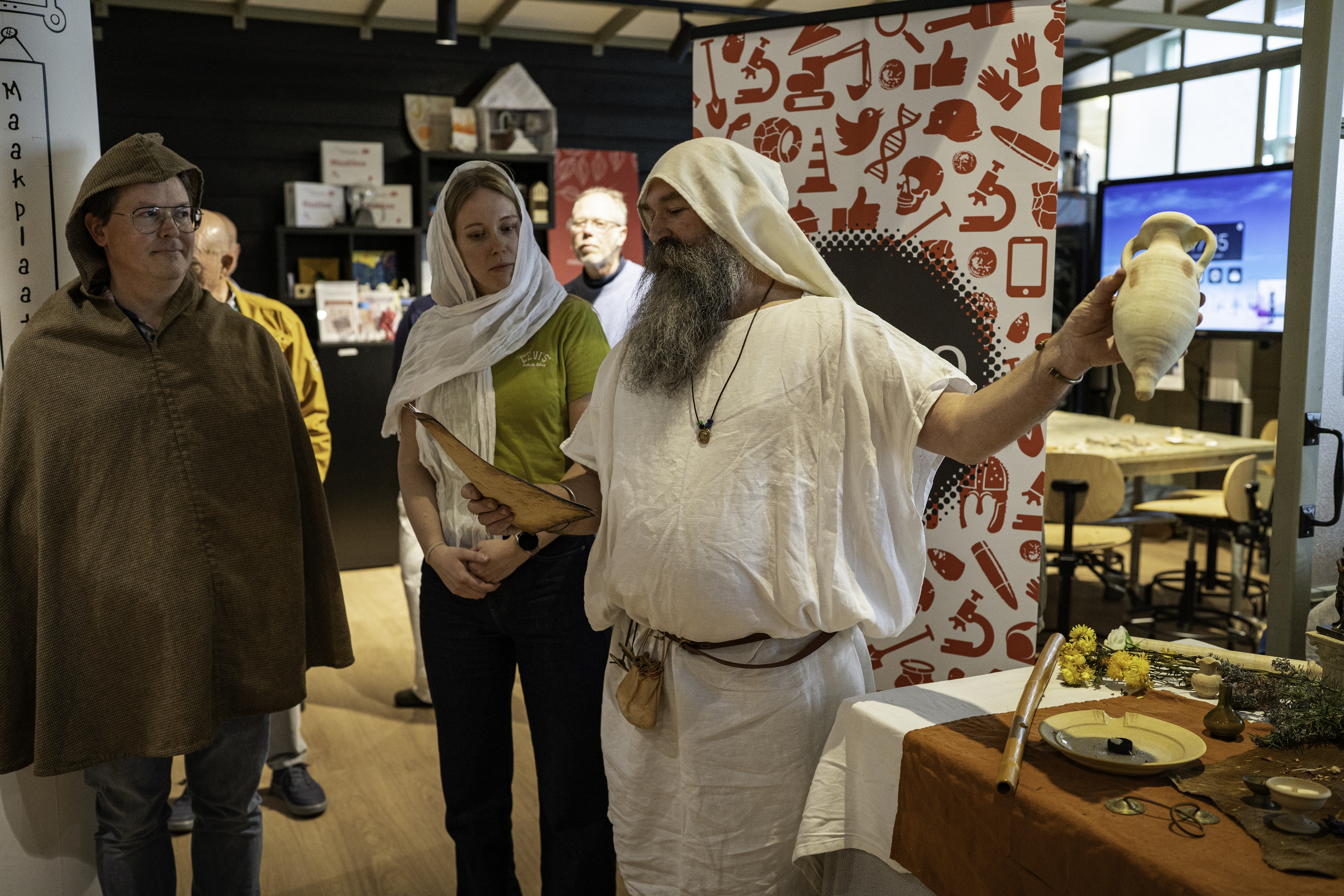 "We hopen dat ArcheoLab ook een plek is voor gesprek, ontmoeting en vooral gezelligheid", aldus publieksarcheoloog Marieke van Winkelhoff van Erfgoedhuis Zuid-Holland. “We zijn heel blij dat Bibliotheek Rijn en Venen ons de ruimte in hun maakplaats heeft aangeboden en ons ondersteunt.”